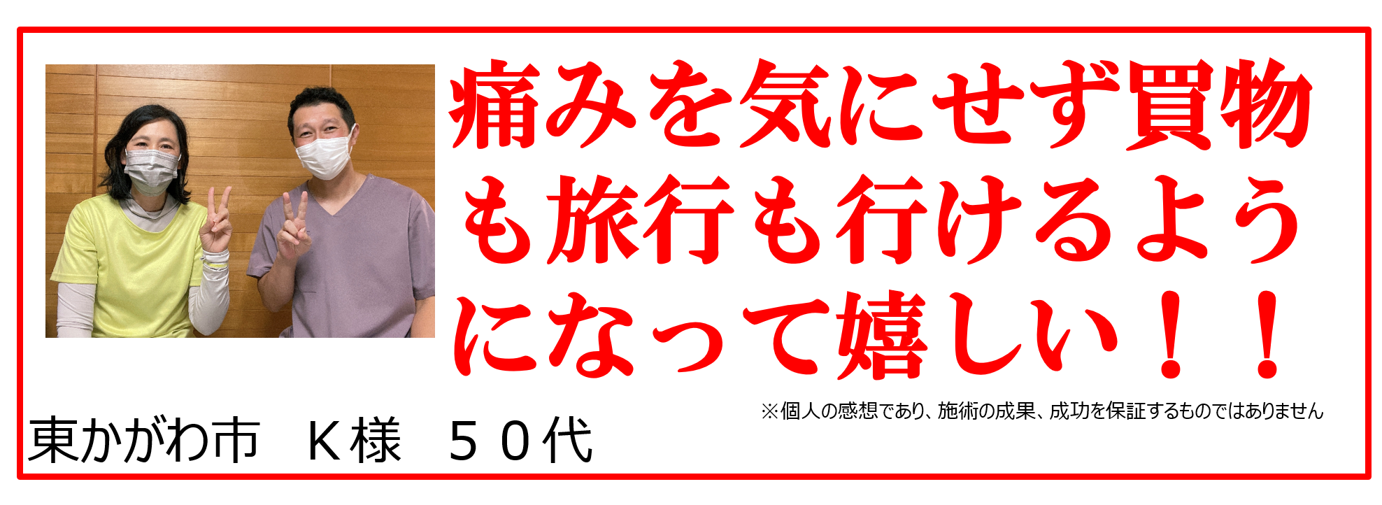 変形性膝関節症がひどくまともに歩けなかった私が良くなりました! 東かがわ市 50代 S様 |