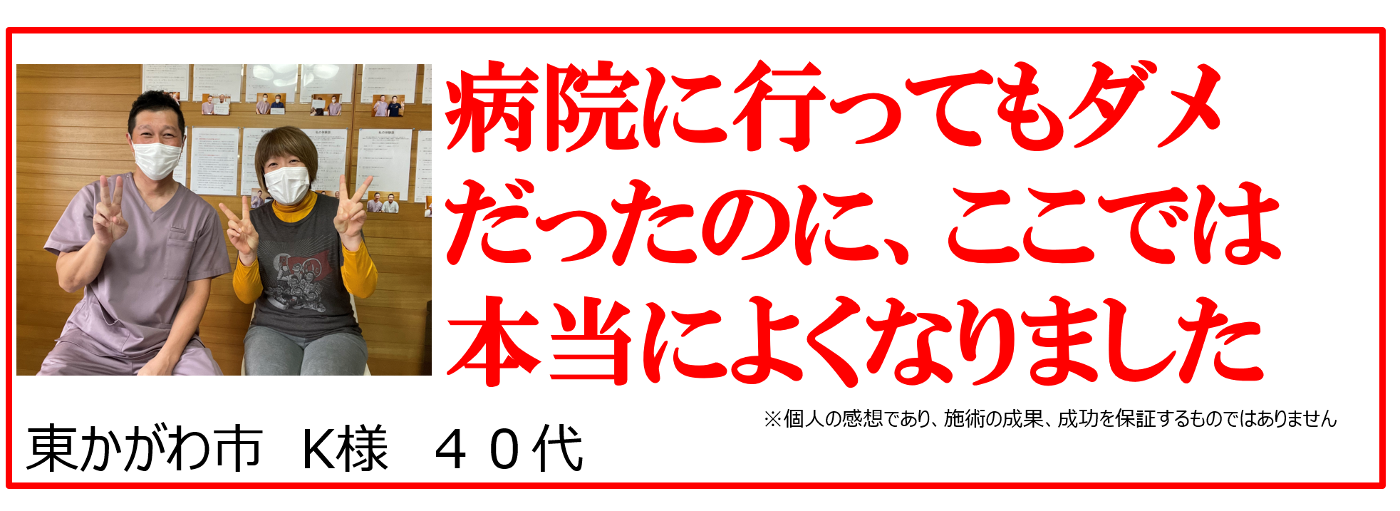 将来、手術だけはしたくないと思って先生のところに通いました! 東かがわ市 70代 M様 |