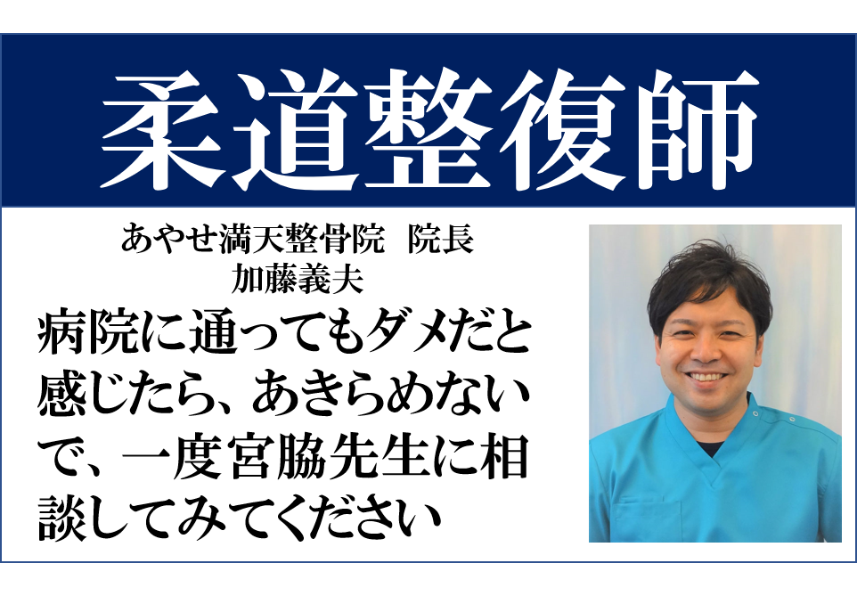 もし、その答えが「NO!」であるなら、今すぐ宮脇施術院に連絡ください